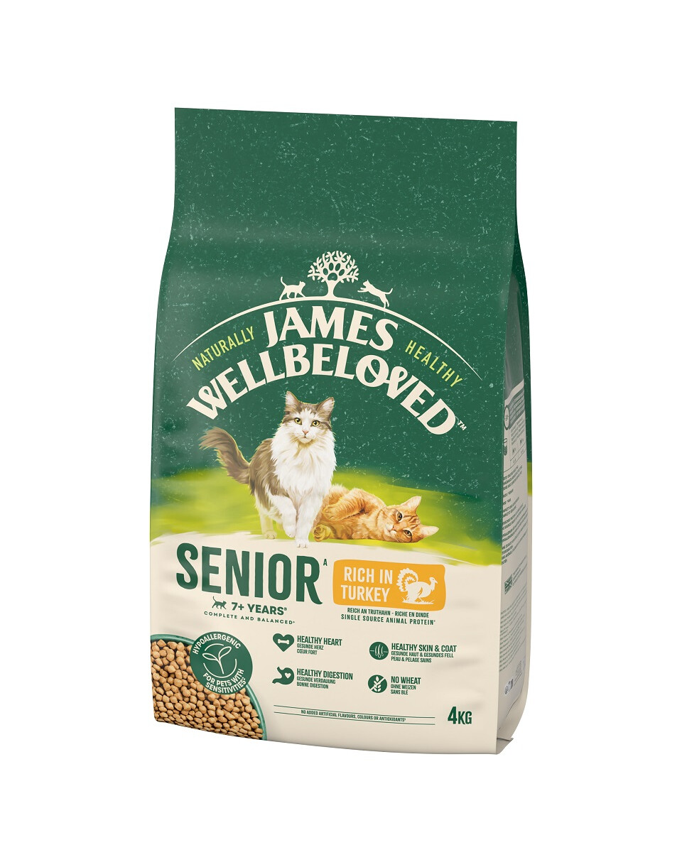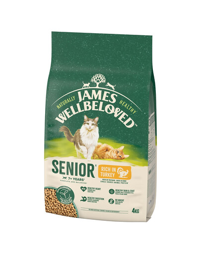 Die Rezeptur dieses Futters wurde sorgfältig entwickelt, um den Anforderungen älterer Katzen gerecht zu werden. Der Zusatz von essentiellen Aminosäuren unterstützt ein gesundes Seniorenherz und natürliche Präbiotika fördern eine gesunde Verdauung. Die Rezeptur enthält ausgewählte natürliche Zutaten ohne Zusatz von künstlichen Aromen, Farbstoffen oder Antioxidantien. Wir haben James Wellbeloved Senior Futter mit Vitaminen und Mineralien angereichert, die Ihre ältere Katze braucht, um glücklich, gesund und lebensfroh zu bleiben.