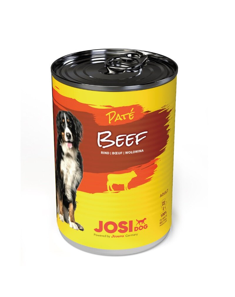 Die Auswahl dieser Mahlzeit wird alle vierbeinigen Lieblinge begeistern. JosiDog Rinderpastete ist eine neue Geschmacksrichtung unter den Josi Nassfuttersorten. Es handelt sich um eine echte Fleischpastete, die reich an Rindfleisch ist. Die Rezeptur ist mit den Vitaminen E und D3 angereichert, um den Hund mit allem zu versorgen, was er für seine Ernährung braucht. Wie immer - ohne künstliche Farb- und Konservierungsstoffe!