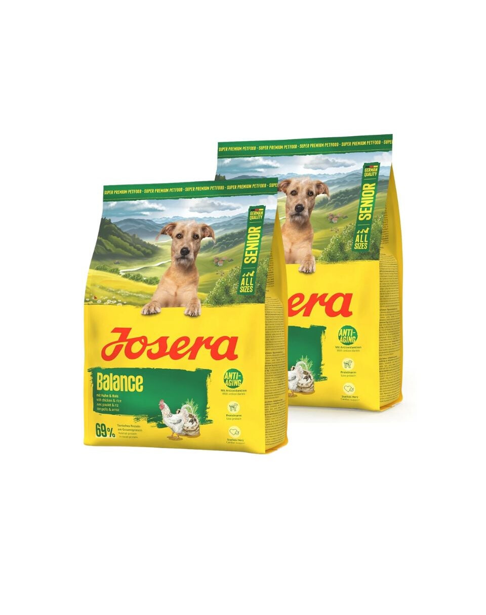 JOSERA Senior Balance ist ein komplettes, fett- und eiweißreduziertes Trockenfutter mit Huhn und Reis für ältere Hunde mit vermindertem Energiebedarf