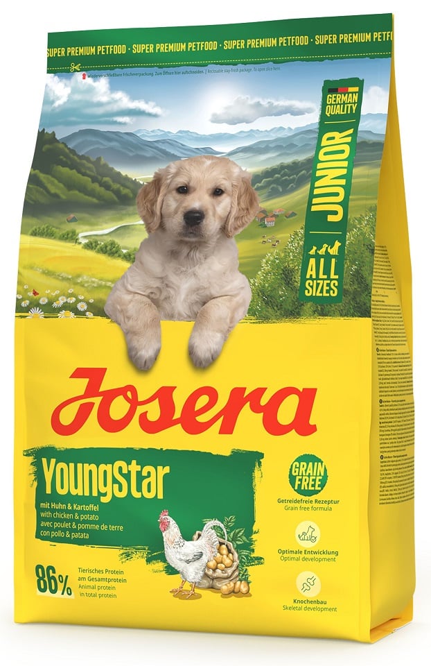 JOSERA YoungStar ist ein vollwertiges, getreidefreies Trockenfutter für Welpen und junge Hunde, das optimale Unterstützung in der Phase des intensiven Wachstums bietet.