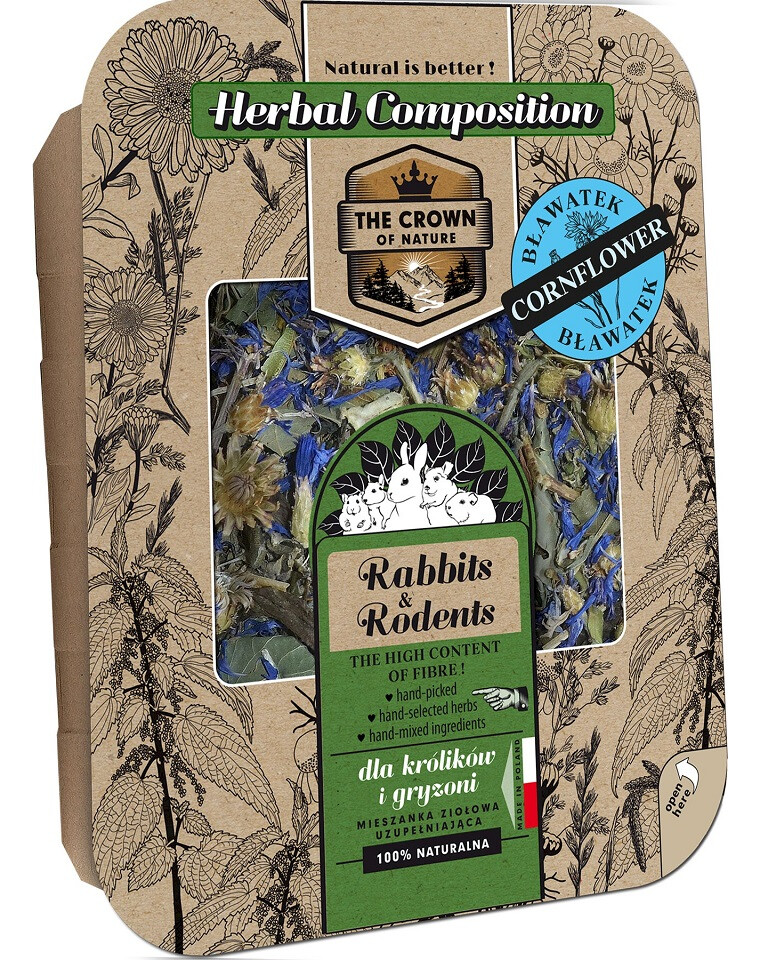 KORONA NATURY Kräutermischung mit Kornblume für Meerschweinchen ist eine perfekte Ergänzung zur Ernährung Ihres Meerschweinchens. Diese Kräutermischung wurde speziell für Meerschweinchen entwickelt und enthält Kornblumen, die die Verdauung und Nährstoffaufnahme fördern. Darüber hinaus tragen die Kräuter zur Reinigung des Körpers und zur Stärkung der Immunität bei.