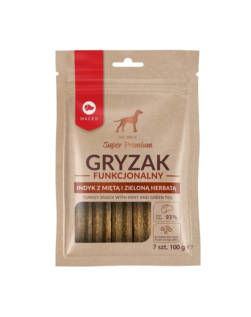 Der funktionelle Kausnack mit Minze und grünem Tee ist ein Monoprotein-Leckerbissen, der dazu beiträgt, Zähne und Zahnfleisch sauber und gesund zu halten. Der Kausnack hilft, die Zähne vor Zahnsteinbildung zu schützen und liefert außerdem Kalzium, das für den Aufbau von Knochen und Zähnen wichtig ist. Der Zusatz von Minze und grünem Tee hat eine antiseptische Wirkung und hilft auch, schlechten Atem zu beseitigen. Da nur eine Fleischsorte verwendet wird, ist der Leckerbissen auch für Hunde geeignet, die auf andere Proteine als Truthahn allergisch reagieren.