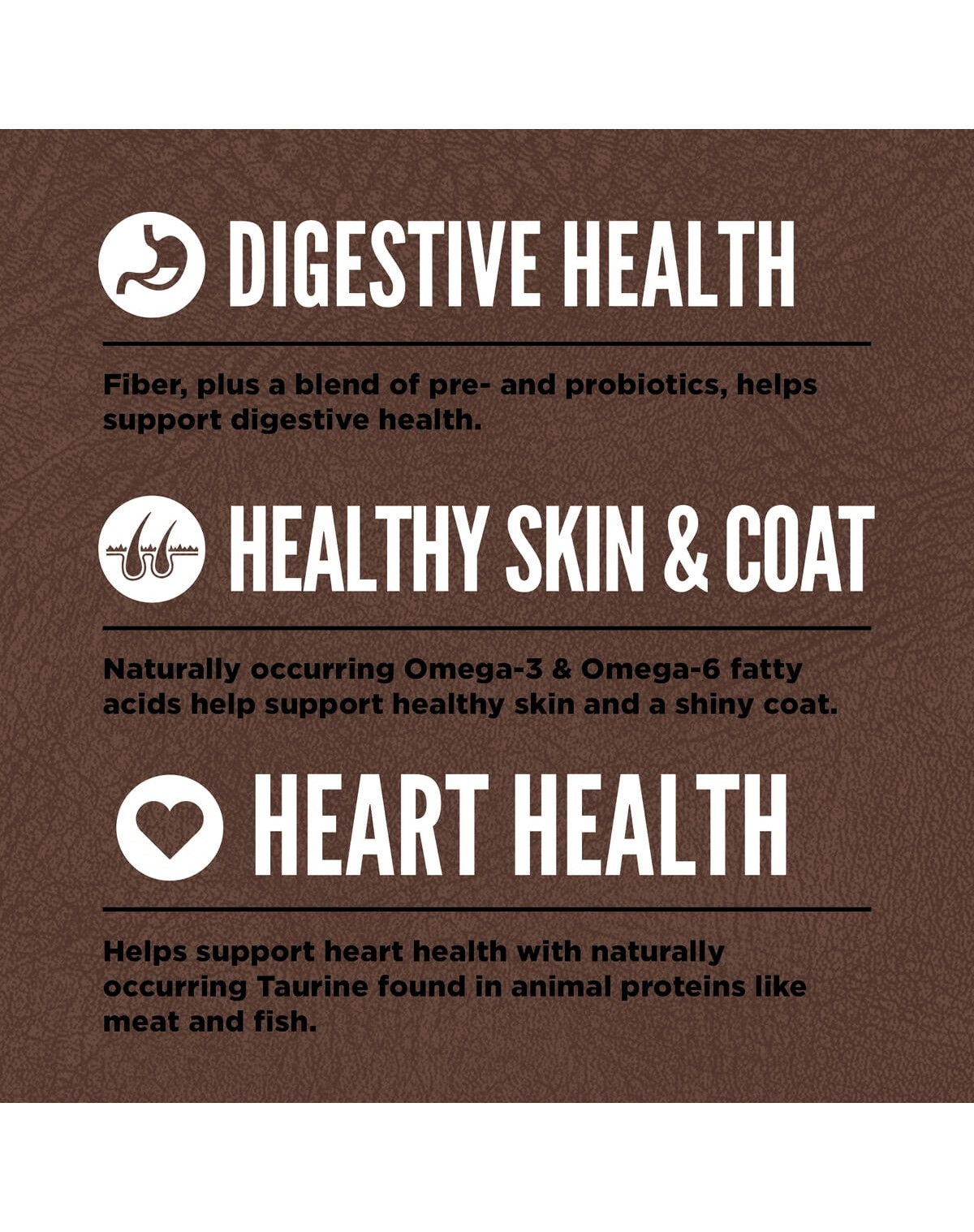Es ist vollgepackt mit nahrhaftem Protein aus wertvollem Angus-Rind, Bison, Wild, Lamm sowie Innereien, natürlich gefangenem Fisch und Eiern aus Bodenhaltung. Die Zutaten werden täglich frisch geliefert und dem Futter in nahrhaften Anteilen zugesetzt. Die Rezeptur ist fett- und kohlenhydratarm und enthält eine einzigartige Mischung aus Kürbis- und Apfelfasern, die eine optimale Kondition für alle erwachsenen Katzen gewährleistet. Die Rezeptur des Futters basiert auf der angestammten Ernährung der Katzen und jahrelanger Forschung. Ein hoher Anteil an tierischem Eiweiß von 85 % liefert die am besten und schnellsten absorbierten Aminosäuren und anderen Nährstoffe. 2/3 der Zutaten sind für den menschlichen Verzehr geeignet, wobei das Futter nur schonend verarbeitet wird, während das restliche 1/3 bei 90* dehydriert wird.