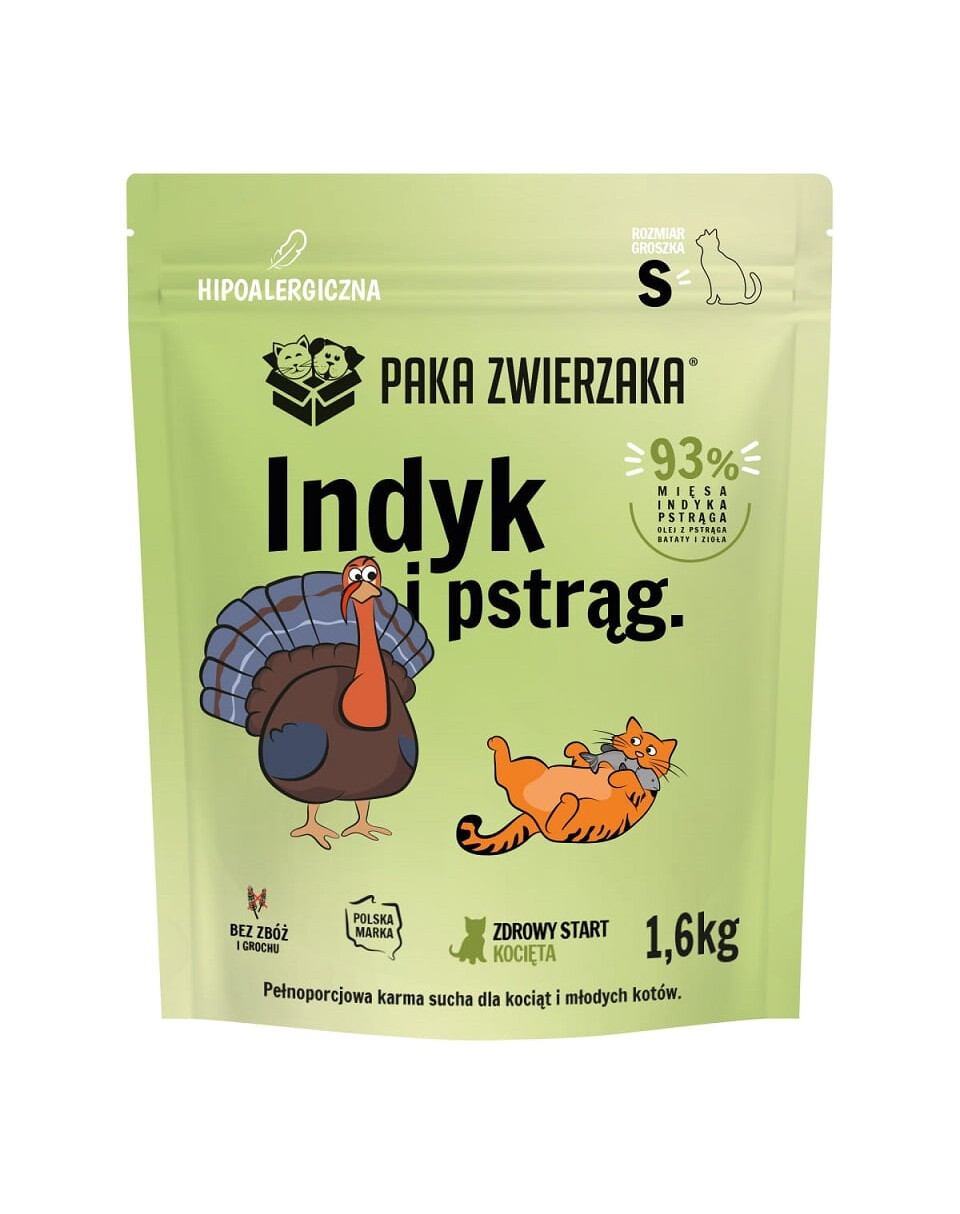 PAKA ZWIERZAKA Karma sucha Indyk z pstrągiem dla kociąt S 1,6 kg