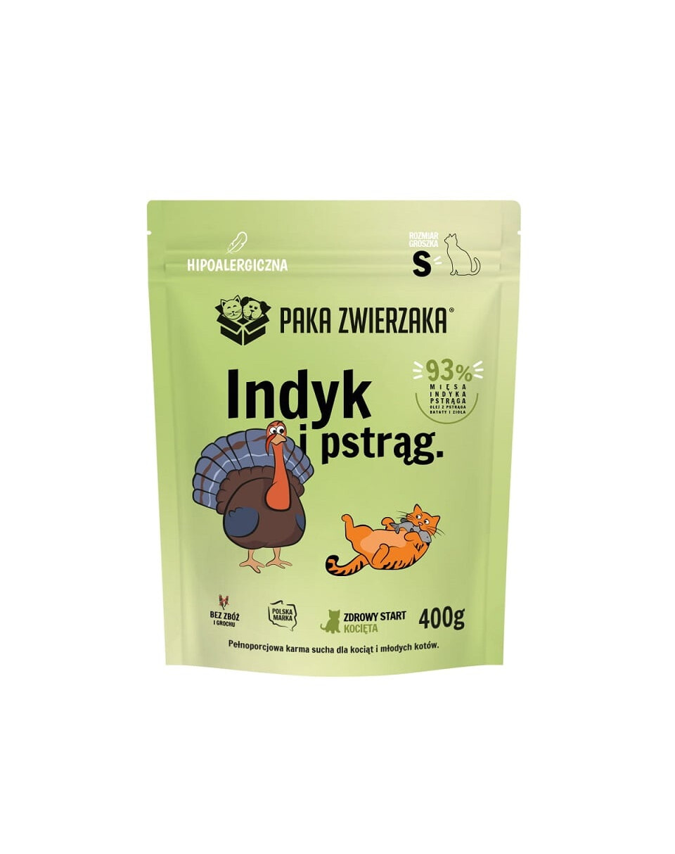 PAKA ZWIERZAKA Karma sucha Indyk z pstrągiem dla kociąt S 400 g