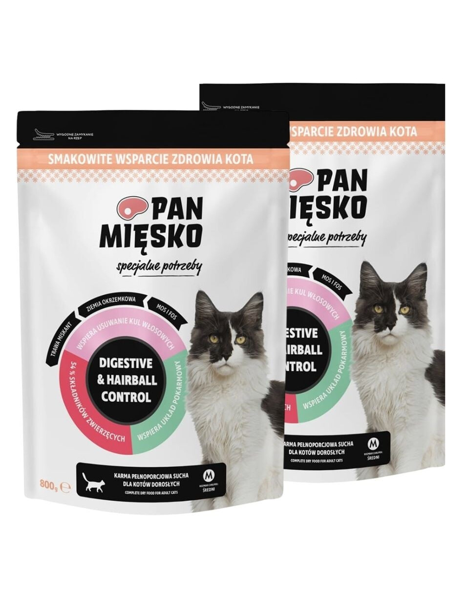 Pan Mięsko – Digestive & Hairball Control ist mehr als nur eine Mahlzeit – es ist tägliche Fürsorge für das Verdauungskomfort und das gesunde Fell Ihrer Katze.