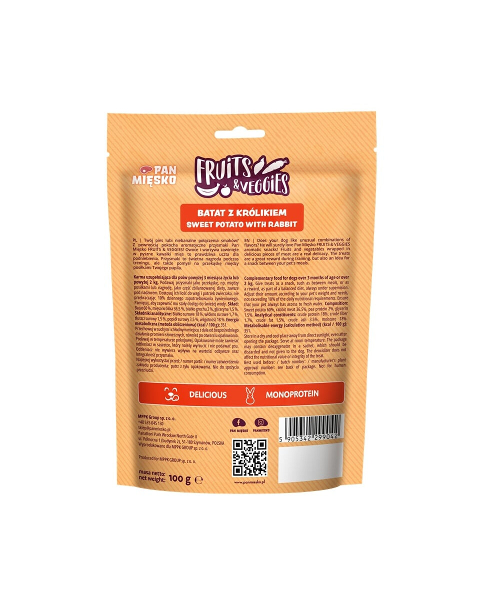 Ihr Hund liebt ungewöhnliche Geschmackskombinationen? Er wird die aromatischen Snacks von Pan Mięsko FRUITS & VEGGIES lieben! Früchte und Gemüse eingewickelt in köstliche Fleischstücke sind ein wahres Fest für den Gaumen. Die Snacks sind eine großartige Belohnung während des Trainings, aber auch eine Idee für einen Snack zwischen den Mahlzeiten Ihres Haustiers.