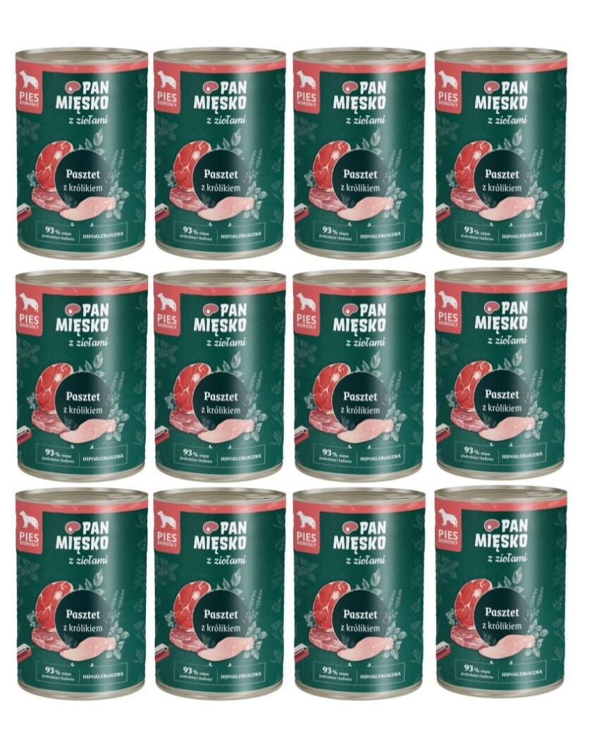 PAN MIĘSKO mit Kräutern Nassfutter Pastete mit Kaninchen für Hunde 12x400 g