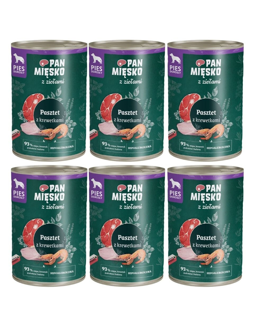 PAN MIĘSKO mit Kräutern PASTETE MIT GARNELEN VOLLFUTTER NAHRUNG FÜR ERWACHSENE HUNDE