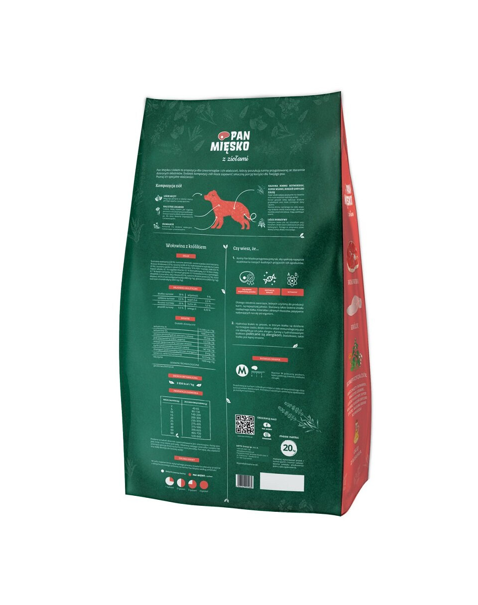 Pan Mięsko mit Kräutern ist ein Angebot für Vierbeiner und ihre Besitzer, die nach Futter suchen, das aus sorgfältig ausgewählten Zutaten zubereitet wird. Die Zugabe einer Kräutermischung schafft eine aromatische Portion Geschmack und Gesundheit für Ihren Hund.
