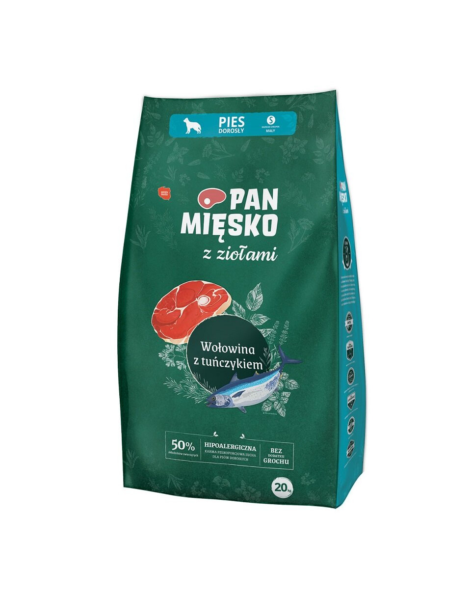 Getrocknetes Rindfleisch (30 %), Tapioka, Reis, Geflügelfett (13 %), getrockneter Thunfisch (4 %), hydrolysierte Hühnerleber (3 %), getrocknete Zichorienpulpe (3 %) (enthält 10 % FOS und Inulin), Kräuter (0,4 % Fenchel, 0,1 % Ringelblume, 0,1 % Brennnesselblätter, 0,1 % Minzblätter, 0,1 % Kamillenblüten, 0,1 % Enzianwurzel und 0,1 % Kümmelsamen), Mineralstoffe, Lachsöl (0,5 %), getrocknete Bierhefe (0,2 %), Yucca Mojave, MOS (Mannooligosaccharide) (400 ppm), Glucosamin (400 ppm), Chondroitinsulfat (400 ppm).