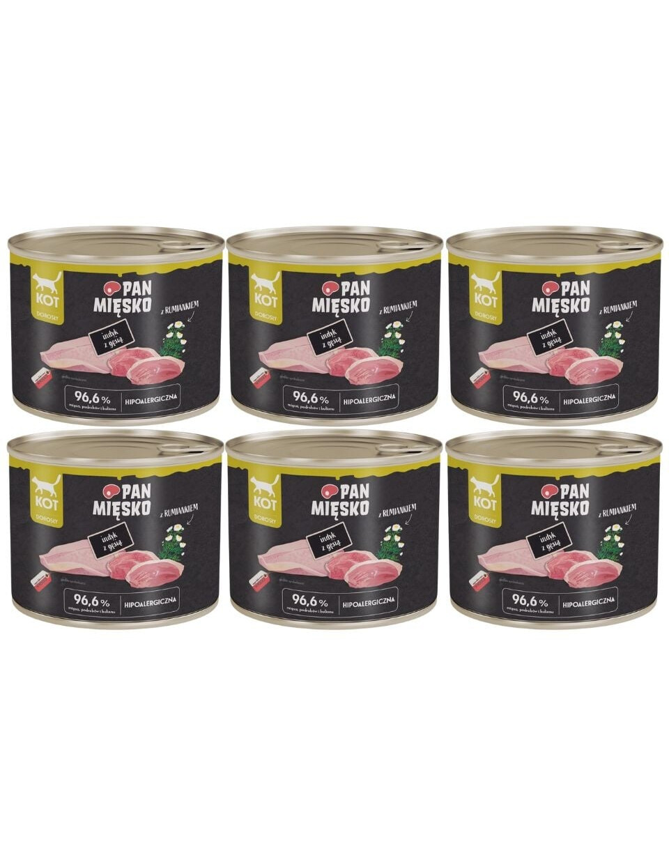 PAN MIĘSKO Nassfutter mit Pute, Gans und Kamille für adulte Katzen hypoallergen 6x200 g