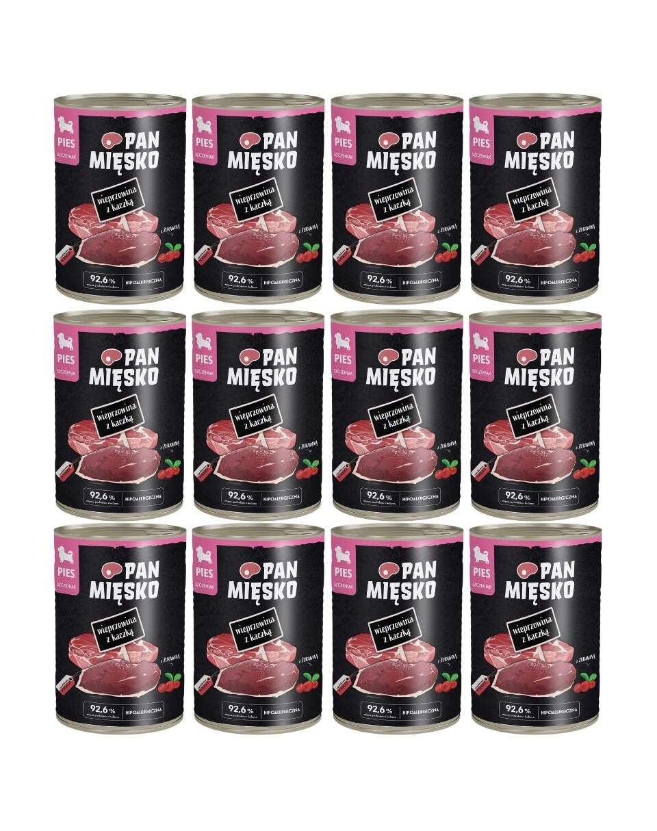 PAN MIĘSKO Nassfutter mit Schweinefleisch und Ente für Welpen hypoallergen 12x400 g