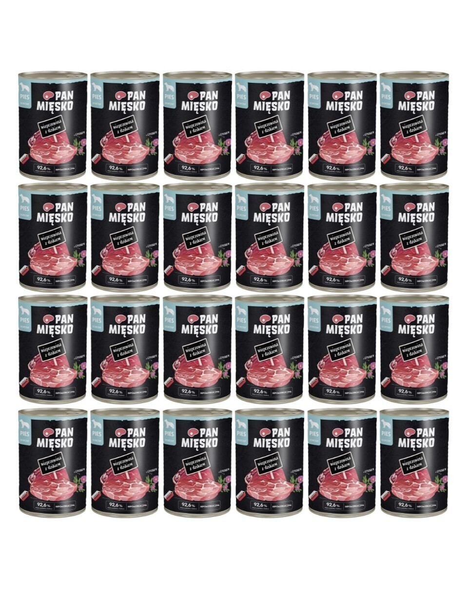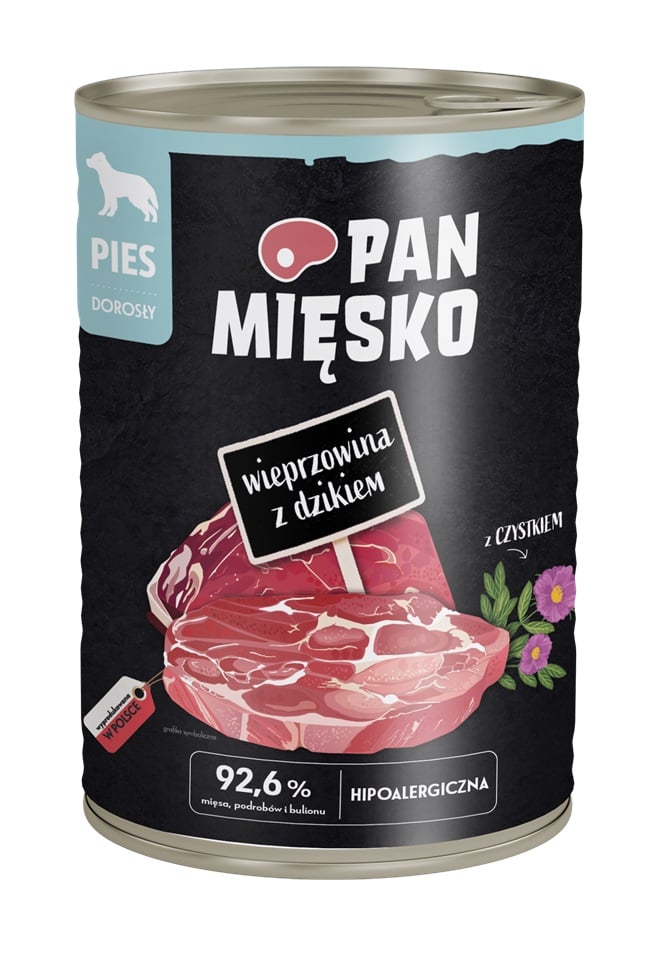 Entdecken Sie die hochfleischigen feuchten Hundenahrungen von Pan Mięsko. Sie zeichnen sich durch sorgfältig ausgewählte Fleischsorten mit saftigen polnischen Äpfeln und wertvollen Zusätzen wie Kräutern oder Samen aus, die sich positiv auf die Gesundheit und das Wohlbefinden Ihres Hundes auswirken. Unsere Rezepturen wurden von Spezialisten entwickelt, um Ihrem vierbeinigen Begleiter genau das zu bieten, was er braucht. Ihr Hund verdient nur das Beste.