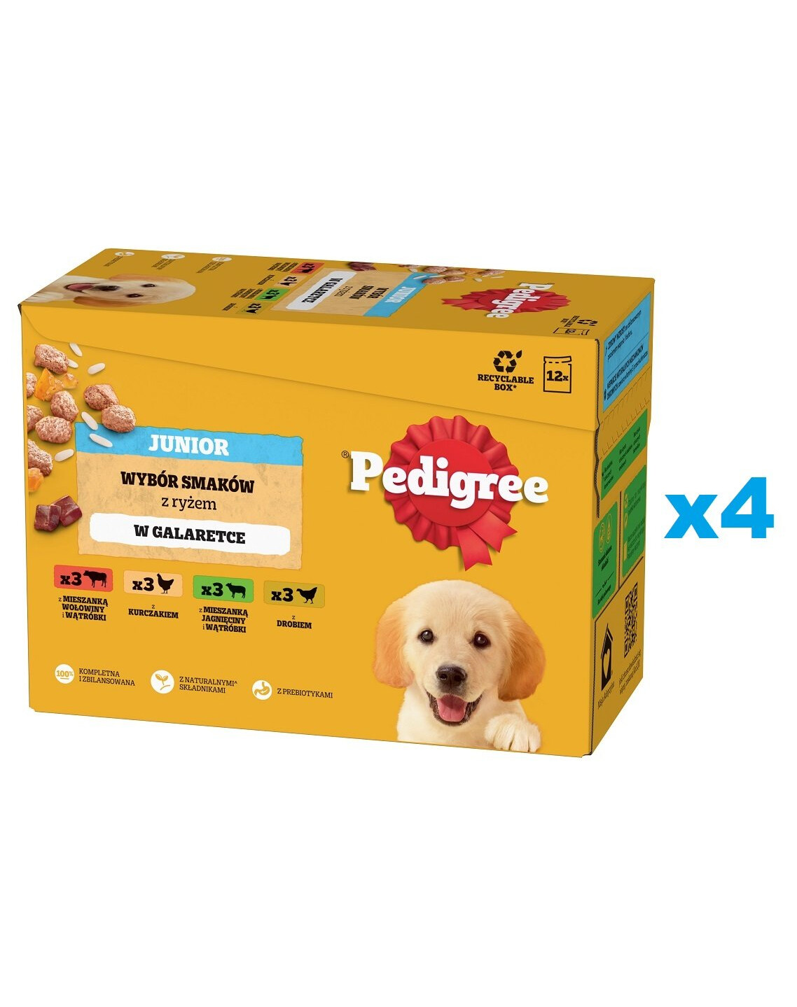 PEDIGREE Junior Choice Nassfutter in leckerem Gelee ist ein vollwertiges Futter mit allen Mineralien und Vitaminen, die für eine gesunde Entwicklung notwendig sind. Es ist für heranwachsende Hunde konzipiert. Ihr Welpe wird die vier Geschmacksvarianten genießen: Stücke mit einer Mischung aus Rind und Leber und Reis, mit Huhn und Reis, mit einer Mischung aus Lamm und Leber und Reis, mit Geflügel und Reis. Die Rezeptur wurde von Tierärzten und Ernährungswissenschaftlern des WALTHAM Institute of Animal Science entwickelt. Ihr heranwachsendes Haustier verdient eine gesunde Entwicklung, deshalb enthält PEDIGREE Junior die richtige Menge an Kalzium und Phosphor, um starke Knochen zu unterstützen. Das in der Rezeptur enthaltene Vitamin E und die Antioxidantien unterstützen die natürlichen Abwehrkräfte, damit Ihr Hund weiterhin die große, wunderbare Welt erkunden kann. PEDIGREE Junior enthält Ballaststoffe, die vom sich entwickelnden Verdauungssystem leicht aufgenommen werden können, denn jeder Welpe einen gesunden Magen verdient.