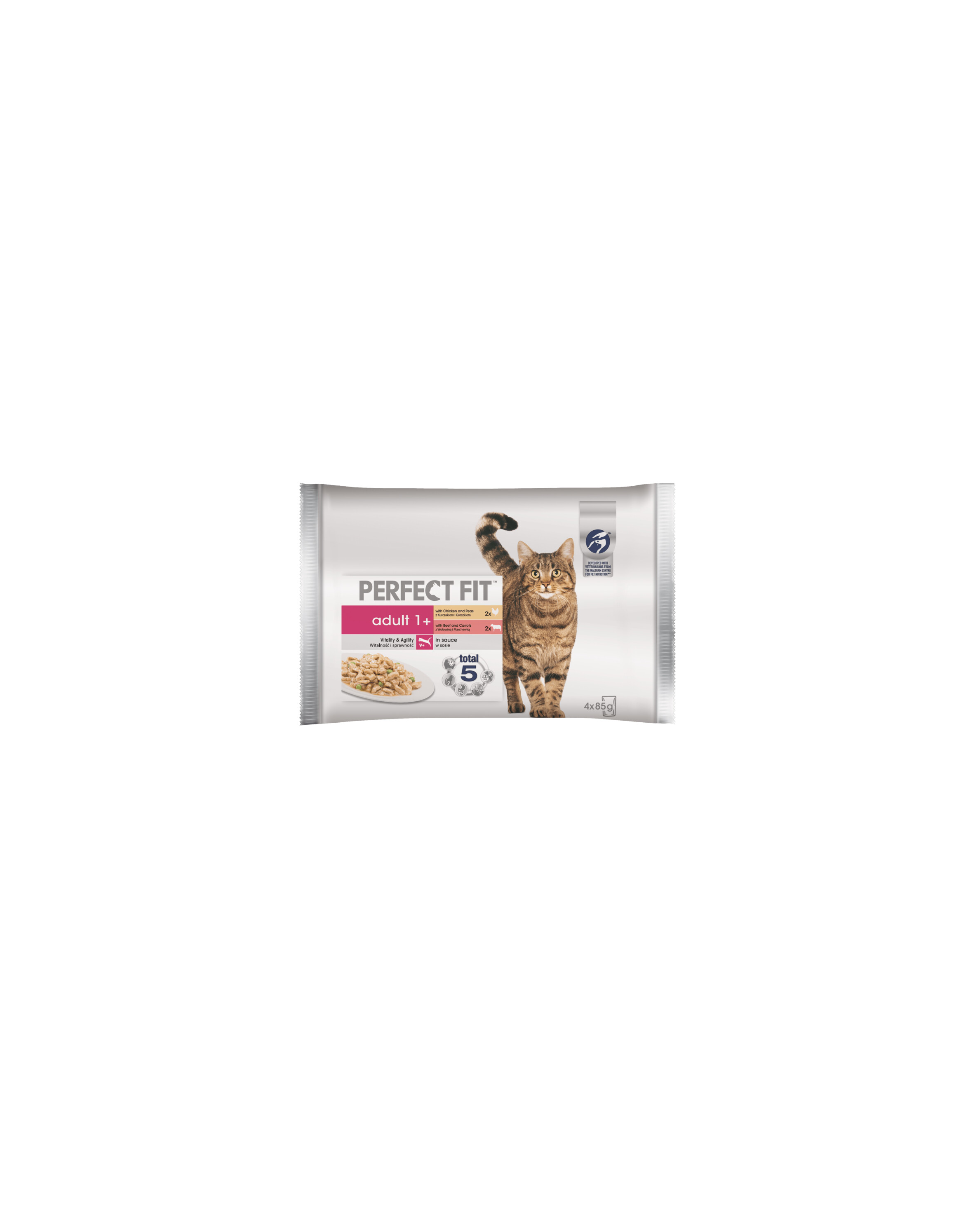 Wir haben Perfect Fit Adult 1+ Nassfutter mit Huhn und Erbsen und Rind und Karotten für ausgewachsene Katzen (über 1 Jahr alt) entwickelt. Es ist ein gesundes, ausgewogenes und schmackhaftes Futter für Ihr Tier. Die einzigartige Perfect Fit-Rezeptur wurde von Ernährungswissenschaftlern und Tierärzten des WALTHAM Animal Nutrition Centre entwickelt. Sie deckt die 5 grundlegenden Gesundheitsbedürfnisse Ihrer Katze effektiv ab. Wir haben Perfect Fit speziell auf die individuellen Bedürfnisse Ihres Tieres abgestimmt, damit Sie sicher sein können, dass Sie Ihre Katze optimal versorgen. Die perfekt zusammengestellte Rezeptur und die spezielle Kombination von Vitaminen und Mineralstoffen helfen Ihrer ausgewachsenen Katze, ihre volle Fitness und Vitalität zu erhalten, und der ausgewogene Proteingehalt stärkt ihre Muskulatur zusätzlich. Geben Sie Ihrer Katze jeden Tag die beste und umfassendste Ernährung.