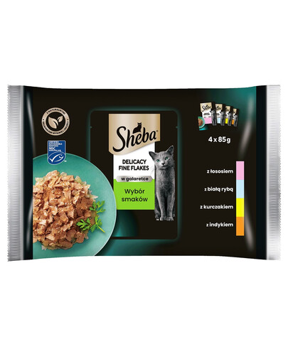 Sheba Delicacy Selection of Flavours ist eine Mischung aus sorgfältig ausgewählten, zarten Stücken in einem wunderbar schmelzenden Gelee. Das Angebot an Mahlzeiten in 4 Geschmacksvarianten, Stücke mit: Lachs, Weißfisch, Huhn, Truthahn, wird den Gaumen selbst der anspruchsvollsten Katzen erfreuen. Das Geheimnis des Meisterrezepts von Sheba Delicacy Choice of Flavours sind hochwertige natürliche Zutaten, Vitamine und Mineralien. Jeder Beutel enthält Nährstoffe, die das reibungslose Funktionieren Ihrer Katze unterstützen. Sheba Delicacy Selection of Flavours ist ein köstliches kulinarisches Angebot für den täglichen Gebrauch, das schnell zum Lieblingsgericht Ihrer Katze wird.