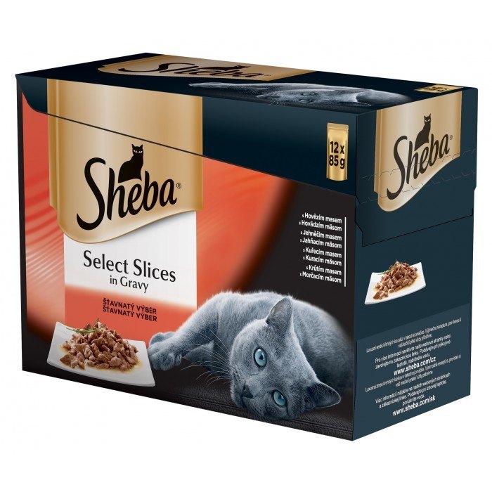 SHEBA Selection Beutel 12x85 g – komplettes Nassfutter für ausgewachsene Katzen, in Soße (Stücke mit: Huhn und Rind, Huhn, Lamm, Ente und Truthahn)