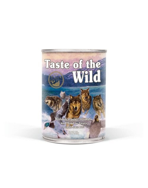 Taste of the Wild - Wetlands ist ein ausgewogenes Nassfutter, das sich auch für ernährungssensible Hunde und Allergiker eignet. Denn die Rezeptur ist getreidefrei und angelehnt an die ursprüngliche Ernährungsweise eines Hundes. Taste of the Wild setzt mit einer Mixtur aus verschiedenen tierischen Proteinen auf ein optimales Aminosäurenprofil. Wetlands wird aus hochwertigen und besonders bekömmlichen Geflügelfleisch hergestellt: Ente, Huhn und Truthahn. Ein hoher Gehalt an natürlichen Antioxidantien unterstützt ein starkes Immunsystem und bietet Zellschutz vor freien Radikalen. Früchte und Gemüse liefern wichtige Ballaststoffe und Pflanzenfasern, die zusammen mit weiteren funktionellen Inhaltsstoffen für eine harmonische Verdauung und Wohlbefinden bei Ihrem Hund sorgen.
