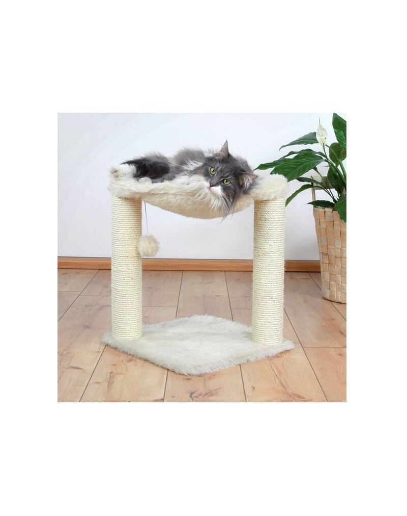 Der Kratzbaum Bazar bietet großen wie auch kleinen Katzen einen idealen Schlaf- und Ruheplatz in einer Höhe von ca. 50 cm. Die weiche mit Langhaar-Plüsch bezogene Liegemulde ist auf zwei stabilen mit Natursial umwickelten Stämmen befestigt. Die 41 x 41 cm große Bodenplatte bietet ausreichend Standfestigkeit und ist ebenfalls mit weichem Langhaarplüsch bezogen.