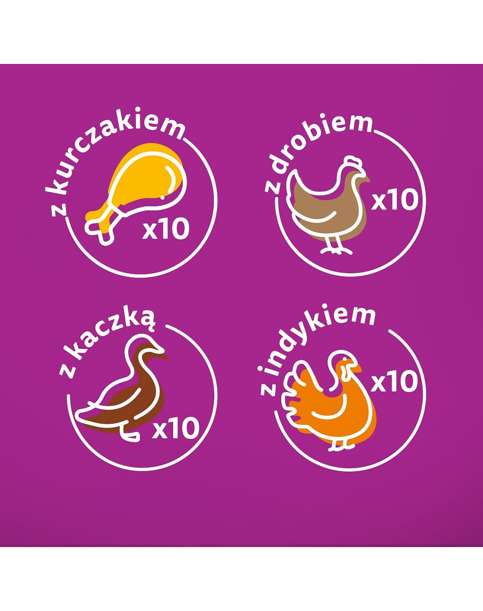 Die leckeren Whiskas Geflügel-Gelee-Fries-Futterstücke werden so zubereitet, dass ihr natürlicher Geschmack und Nährwert erhalten bleiben. Durch das Dampfgaren werden sie saftig und zart, was Ihre Katze vor Freude schnurren lässt. Ihr Katzenfreund wird sich an einer der vier Varianten erfreuen, Stücke mit: Huhn, Pute, Geflügel, Ente. Das Futter von Whiskas wird mit natürlichen Zutaten und hochwertigem Eiweiß zubereitet, ohne künstliche Farb- und Konservierungsstoffe für ein außergewöhnliches Essvergnügen. Die leicht zu verzehrenden, leckeren und zarten Häppchen enthalten Zink, um die Gesundheit von Haut und Fell zu unterstützen, und die ausgewogene Zusammensetzung von Mineralien hilft, die Harnwege Ihres Haustiers zu pflegen.