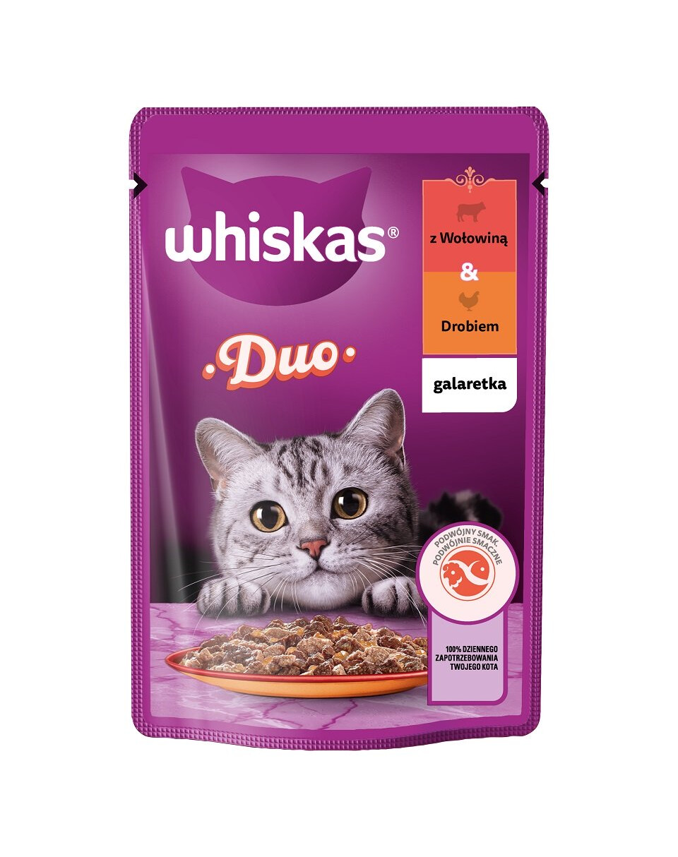 Whiskas Mahlzeiten ist ein sorgfältig zubereitetes, komplettes und ausgewogenes Nassfutter für ausgewachsene Katzen. Dieses köstliche Futter enthält saftige, fleischige Brocken, die in ein schmackhaftes Gelee getaucht sind, dessen Größe speziell auf die Bedürfnisse von Katzen abgestimmt wurde. Das schmackhafte Futter im praktischen Beutel enthält Zink zur Unterstützung der Haut- und Fellgesundheit, während die ausgewogene Mineralstoffzusammensetzung die Harnwege Ihres Tieres pflegt. Vom verspielten Kätzchen bis zur bezaubernden erwachsenen Katze - unsere schmackhaften Rezepturen sorgen dafür, dass Katzen jeden Alters zu den Mahlzeiten und darüber hinaus zufrieden schnurren.