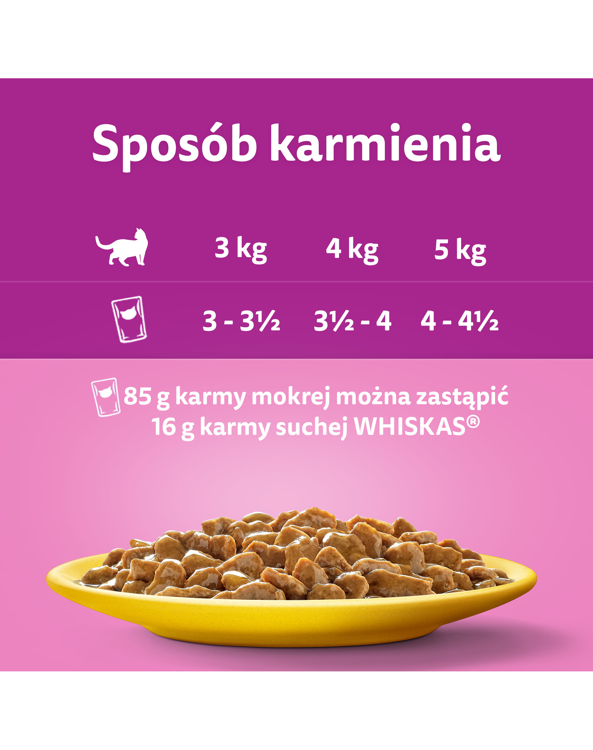 85 g Nassfutter können durch 16 g WHISKAS Trockenfutter ersetzt werden.