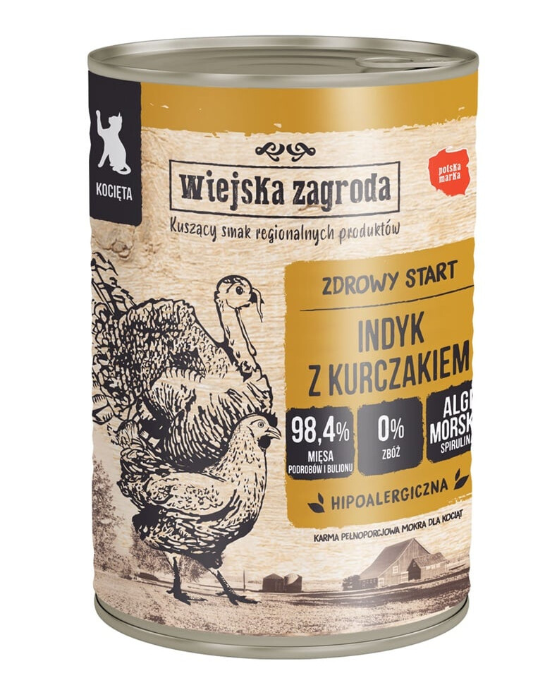 WIEJSKA ZAGRODA Pute mit Huhn 400g Dose für Kätzchen