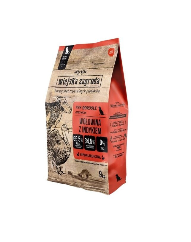 WIEJSKA ZAGRODA Rindfleisch mit Pute ist ein Alleinfuttermittel für größere Hunderassen.